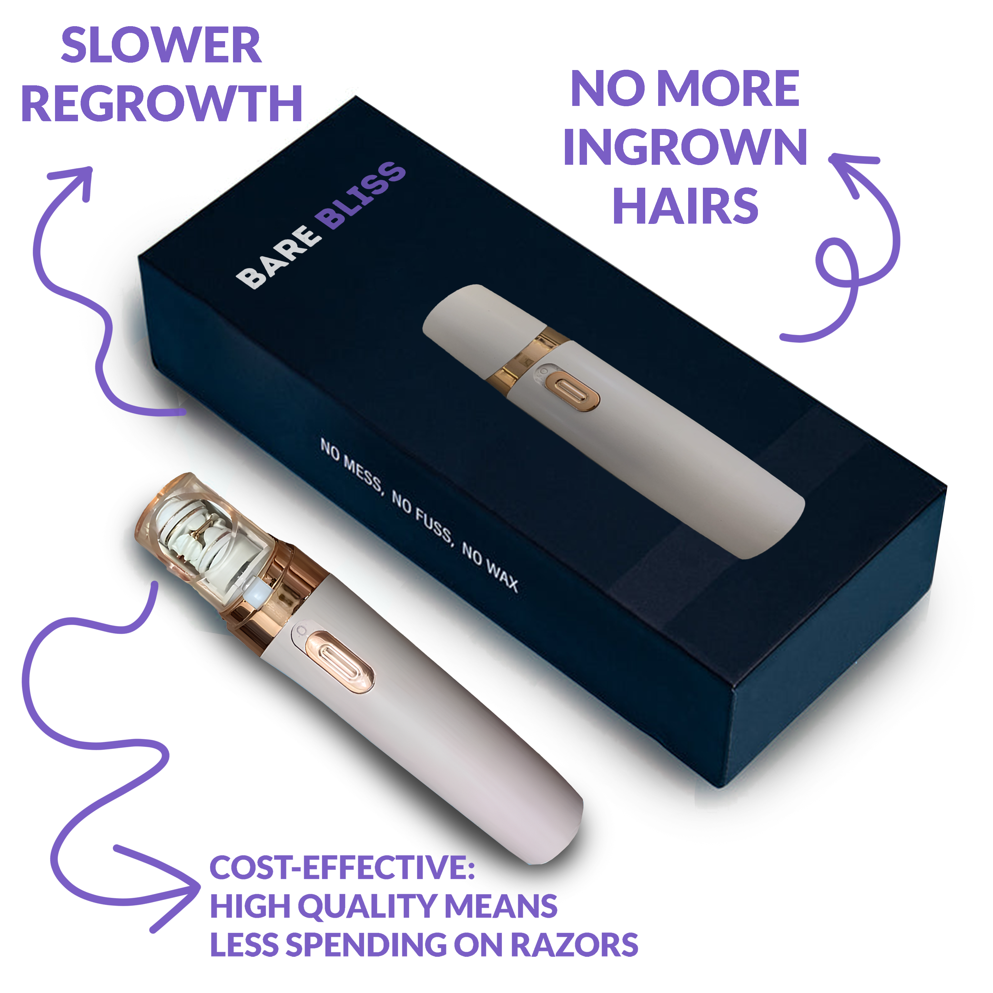 Our revolutionary Bare Bliss Pro V2™ removes hair straight from the root, leaving your skin smooth for an entire month and ensuring that hairs grow back thinner with each use.
